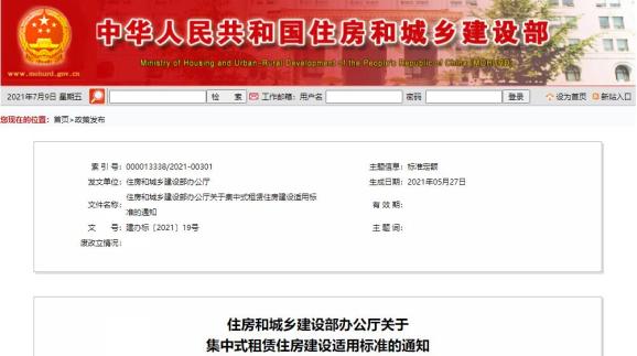 原标题:《集中式租赁住房建设适用标准来了!》