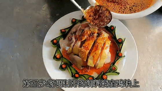 將调制好的调料浇在鸡块上撒上葱花即可食用