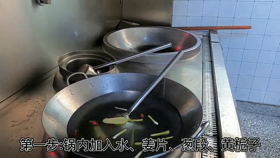 锅里加水,加入姜、葱段、黄栀子、料酒、盐,再把三黄鸡放入锅里煮
