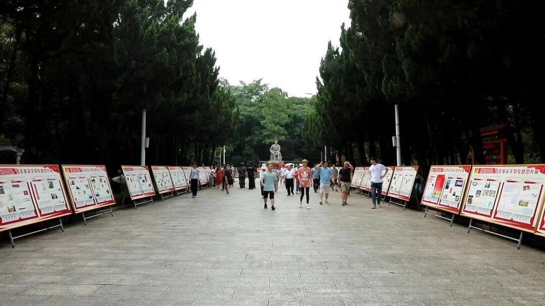 祁阳4A级旅游景区一一浯溪碑林在景区内开展红色中国百年革命文物图片展,让游客们能够在旅途中聆听党史,在行走中感受红色历史文化,吸引了众多党员、游客前来"打卡"学习。