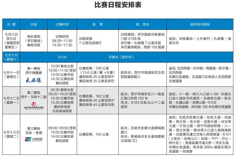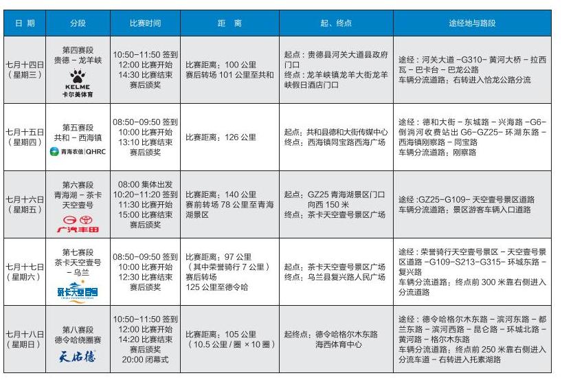 2021“天佑德杯”第二十届环青海湖国际公路自行车赛日程安排