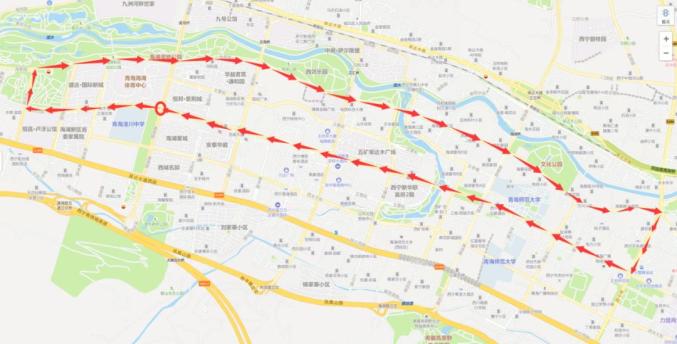 72路:由青海师范大学(新校区)行驶至海湖立交桥后调头;
