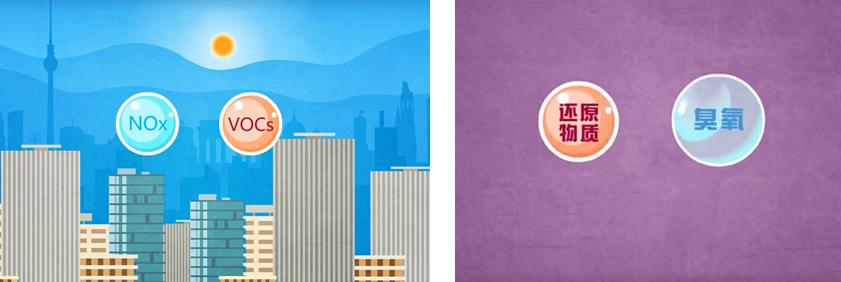 臭氧污染并非直接排放导致,是由进入到大气中的氮氧化物(NOx)和挥发性有机物(VOCs)在阳光下发生大气光化学反应产生的,属于大气二次污染物。