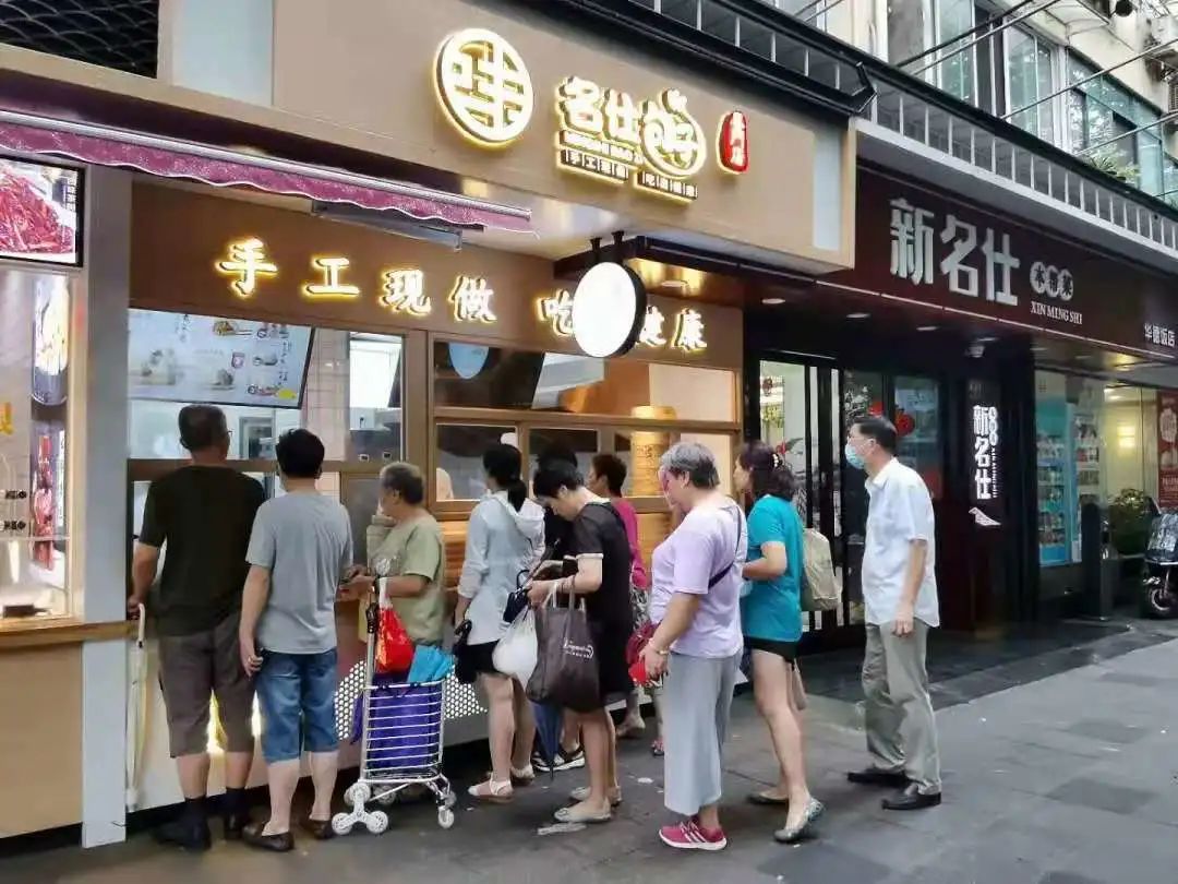一早,名仕包子铺前早已排起长队,窗口处不时冒出扑鼻的热气。