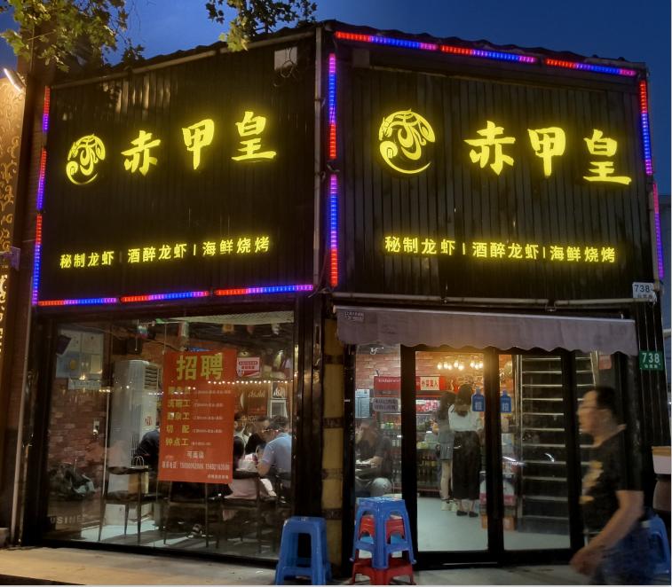 非常红火的一家龙虾馆,人气爆棚需排队。酒醉龙虾的喷气葫芦娃造型独特,秘制龙虾独特的秘制卤香,吸一口虾黄甜辣味便在味蕾绽放。