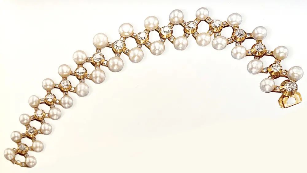 黄金底座镶嵌海水珠和钻石手链/18世纪