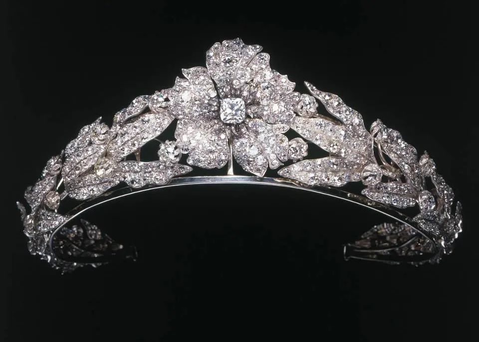 玛格丽特头顶的钻石花卉冠冕为法国皇家珠宝工坊Mellerio于1867年制作,叔叔伊曼纽尔二世在次年玛格丽特结婚时将它作为礼物赠送