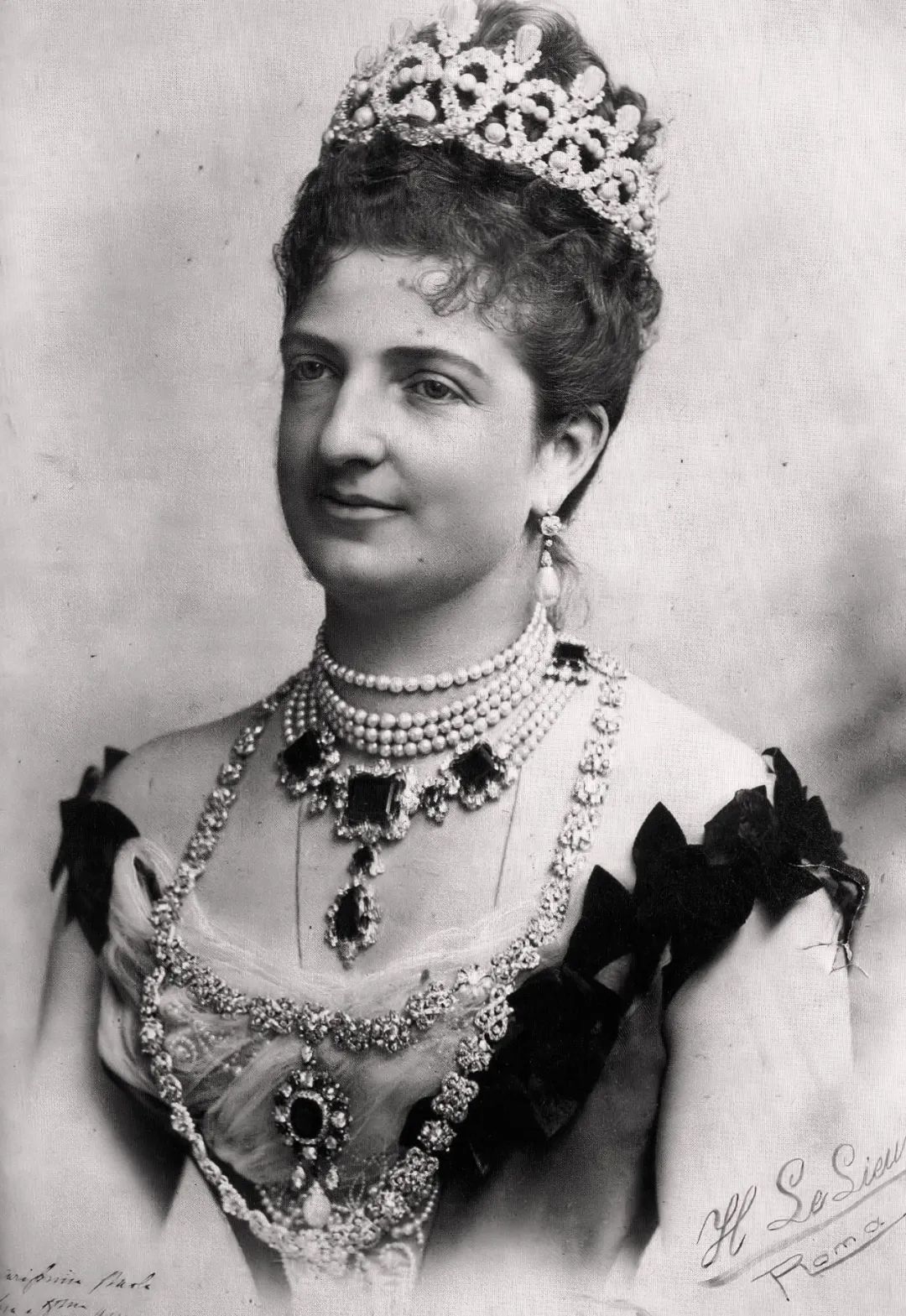 她是玛格丽特·玛丽亚·特蕾莎·乔瓦娜(Margherita Maria Teresa Giovanna),意大利萨伏依王朝的王后,珍珠首饰多得令各国王室都羡慕的她又被称作“珍珠女王”。