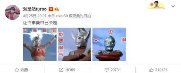 刘昊然甚至发了微博力挺自己的本命「艾斯」。