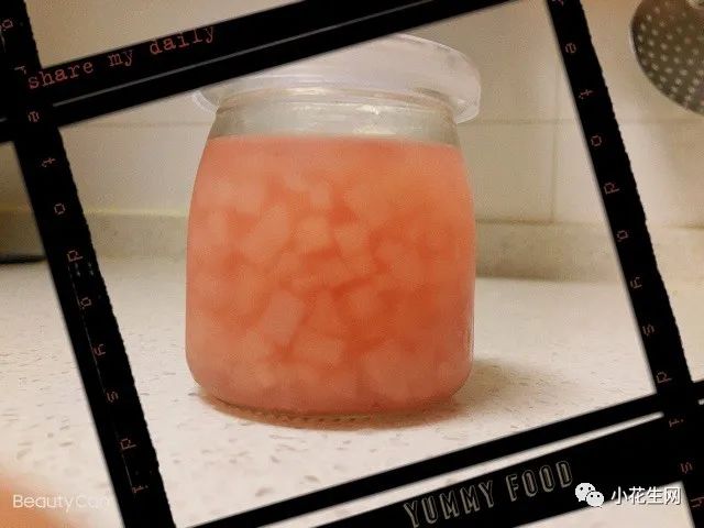 4. 把冰糖桃丁放冰箱腌制3个小时左右,让其出汤