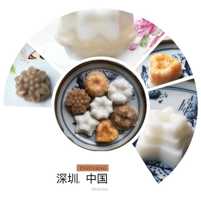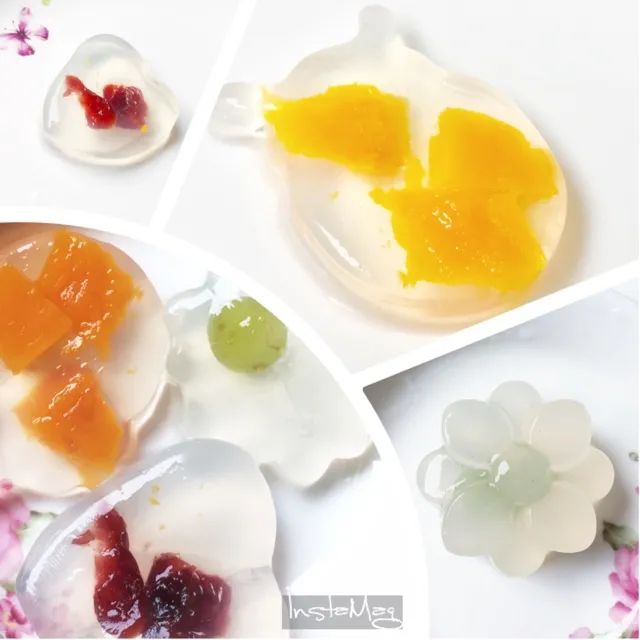 材料:琼脂、水、糖、水果丁/果酱、硅胶模具