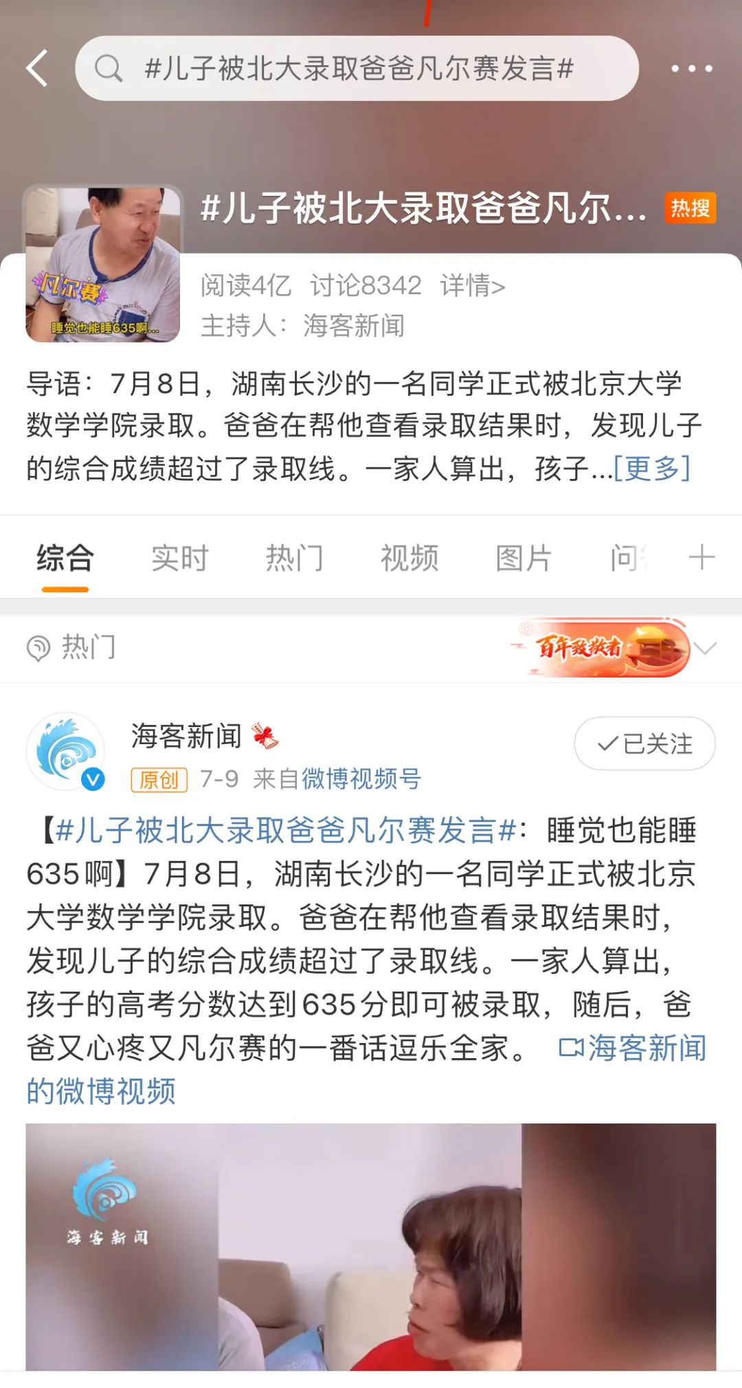 原标题:《儿子被北大录取,父亲“凡尔赛”发言上热搜!》