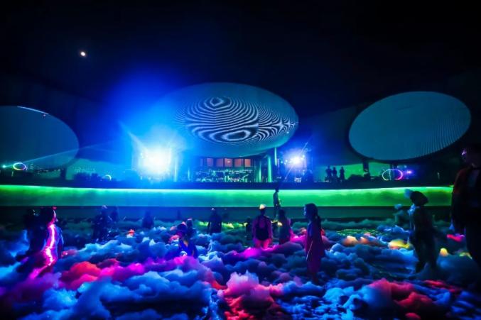 一楼为开放式休憩区、健身区、吧台区、游艺区、装备展示区、教学区和9米泳池景观互动区,二楼恒温潜水池配备了淋浴室、更衣间。
