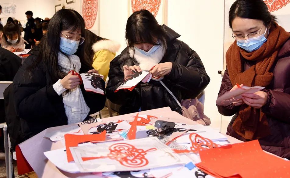 ▲2021狮山欢乐节,同学们体验剪窗花(侯国涛 摄)
