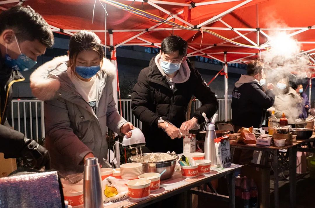 ▲2021狮山欢乐节,美食区同学们准备食材(喻静一 摄)