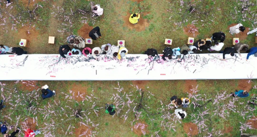 ▲2021云赏狮山春,“桃园画春”活动现场,数百名师生现场吟诗、作画、赏春,万余名师生校友云端品赏(戴壮 摄)