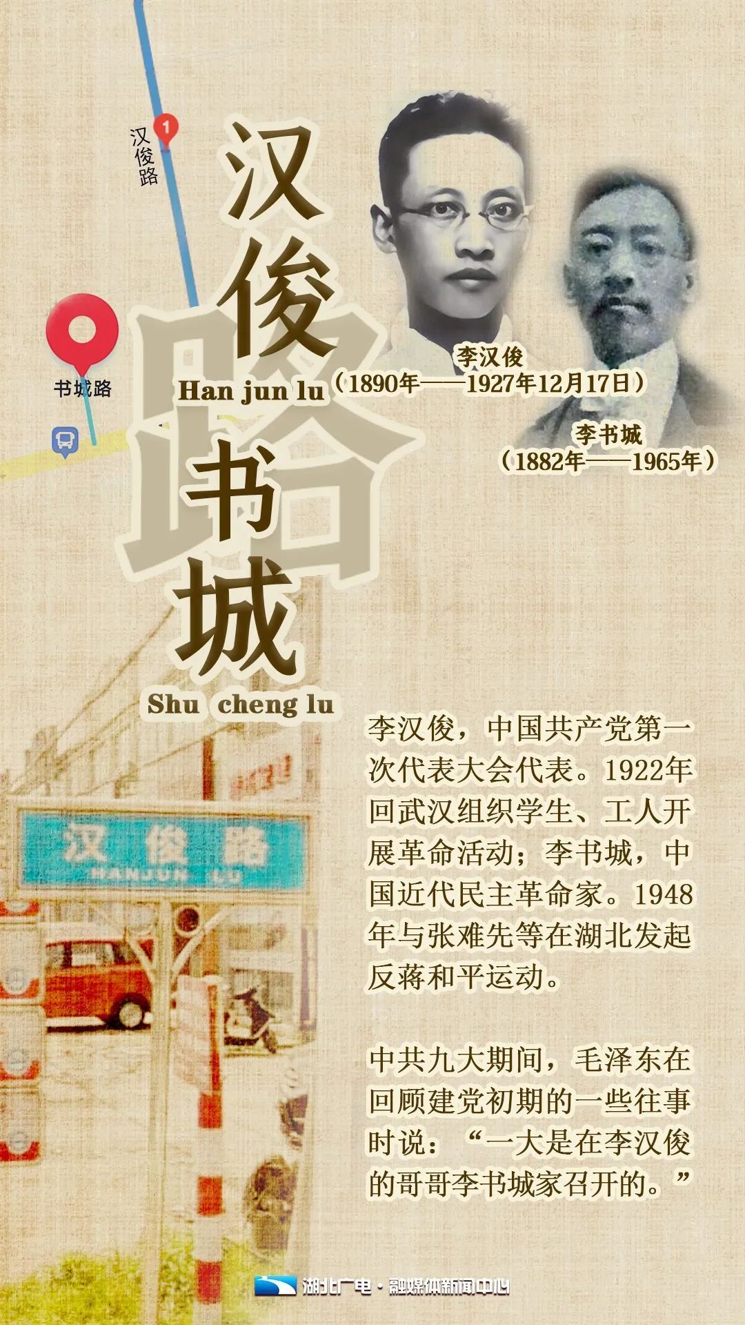 为纪念李汉俊和李书城这对来自湖北潜江的“革命亲兄弟”,潜江市园林街道办事处袁桥社区有两条平行的道路分别以他们的名字来命名。