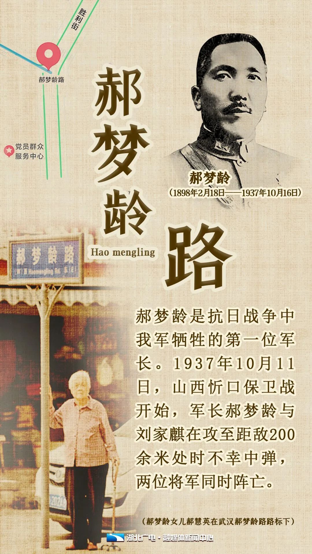 1937年10月24日,郝梦龄的灵柩由山西运到武汉,武汉各界举行公祭,并以国葬礼将其安葬在武昌卓刀泉。为纪念郝梦龄的功勋,汉口北小路改名为郝梦龄路,沿用至今。