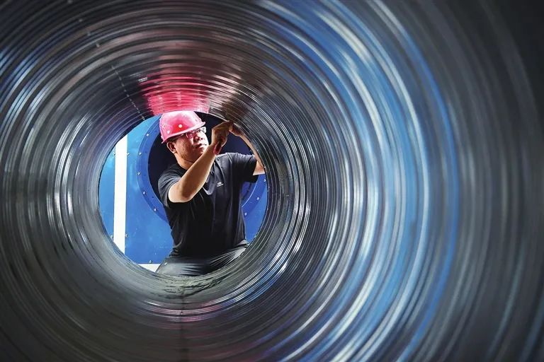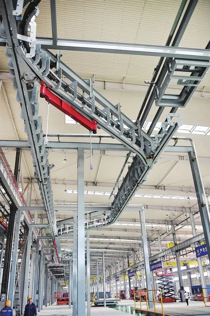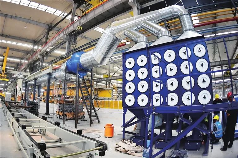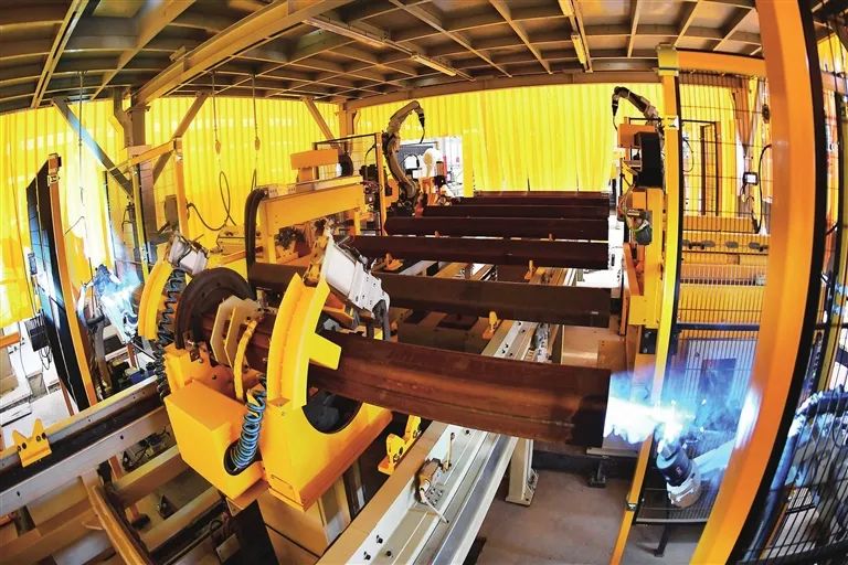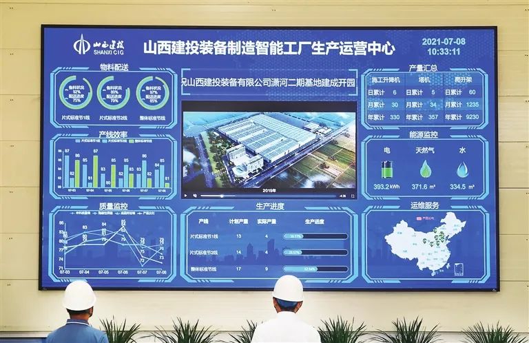 其中,高温清洗和处理工艺为行业首创;无VOC(挥发性有机物)排放,厂房内所有焊接作业所产生的烟尘都由一套超大型“抽油烟机”收集、处理,各项环保数据达标后由电脑程序下达排放命令,“杜绝了人为干预,超标排放”,为绿色发展提供了极具前瞻性的解决路径;定制化开发建筑装备生产制造MES系统(制造执行系统)、ERP系统(企业资源计划)、PDM系统(产品数据管理系统)等,打造“1”个平台(工业互联网平台)、“2”个中心(生产监控中心、远程运维中心)、“3”个端(生产端、管理端、服务端)的信息化体系,通过以太网、5G等技术实现设施高度互联,实现建筑装备制造全流程信息化管控。