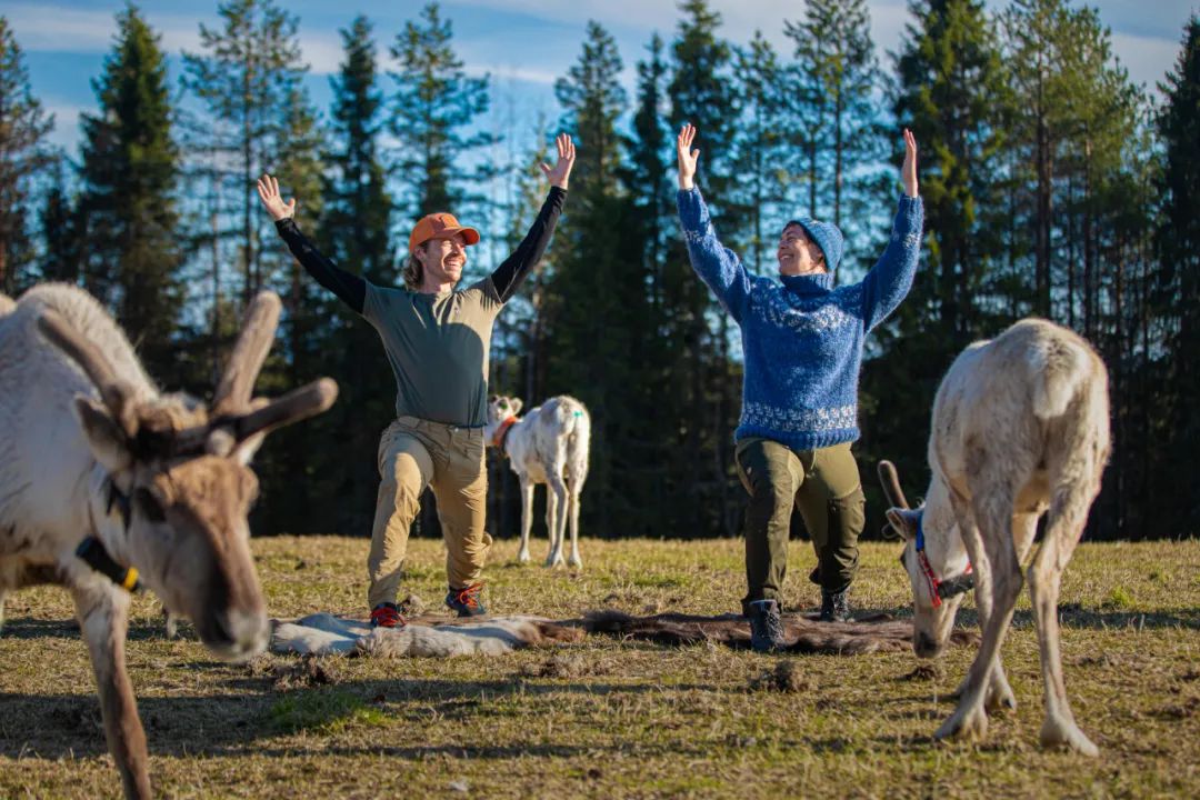 在驯鹿的包围下学习瑜伽。图/Anssi Tiusanen ©VisitFinland