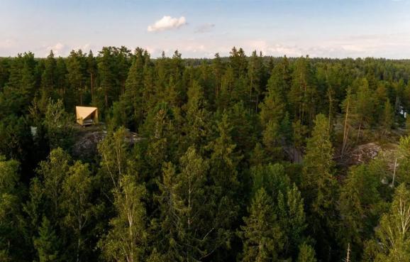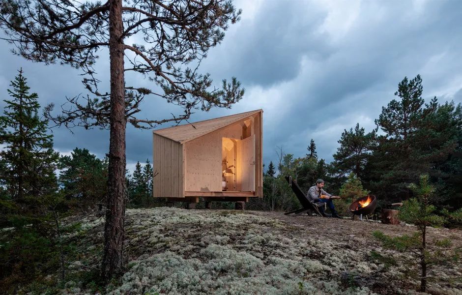 他们也不满足于在平地。疫情期间,芬兰本土建筑事务所Studio Puisto设计了一款轻量化的木屋,它可以被起重机或直升机整体吊装至森林中的任何位置,从此做个“山顶洞人”不是梦。