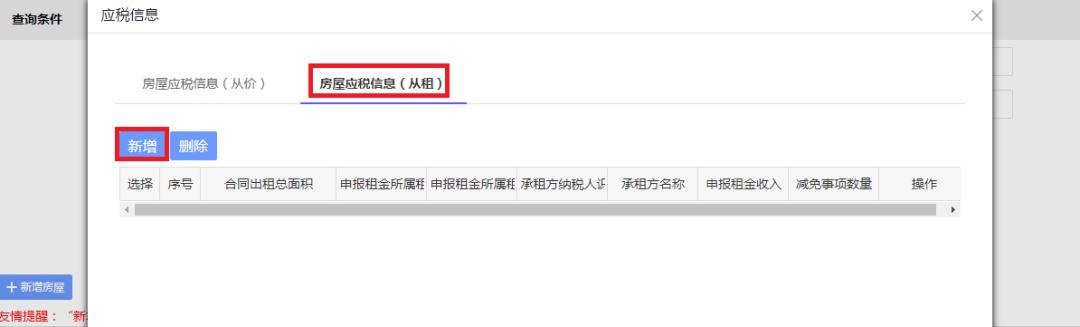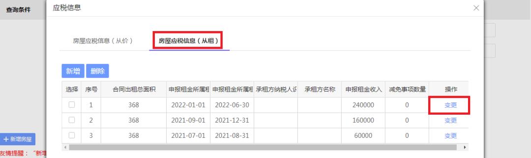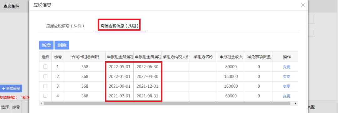 在“房屋应税信息(从租)”标签页中展示的为目前已经存在的从租应税信息。