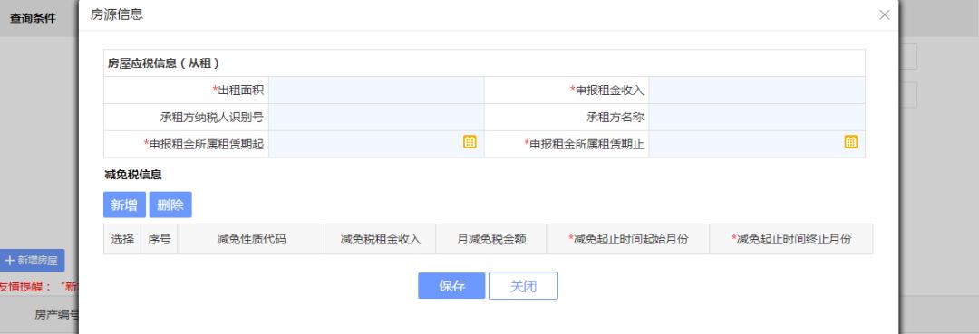 点击“房屋应税信息(从租)”标签页下的“新增”按钮,系统跳转至“房屋应税信息(从租)”应税信息维护页面。