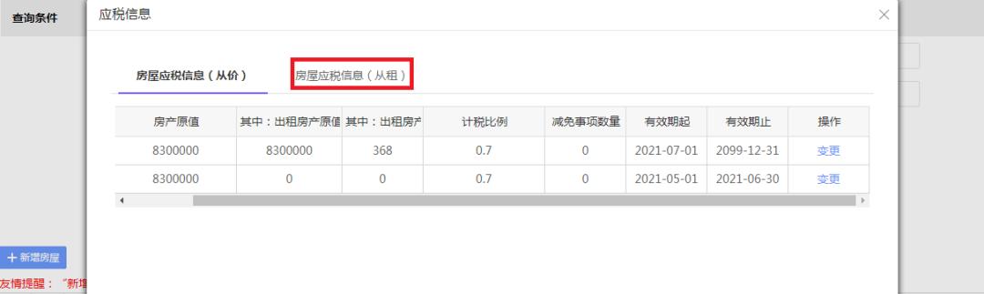 手动点击右侧“房屋应税信息(从租)”标签页方能查看已经变更成功的从租应税信息。