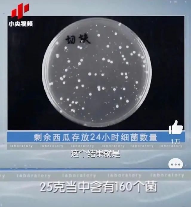 然而,一项实验对冰箱中冷藏24小时的西瓜进行细菌检测,发现25g西瓜中就含有160个菌。