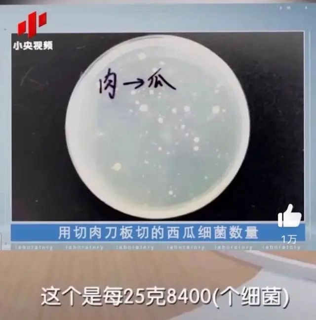 实验数据表明:将切完肉的刀板简单清洗后继续切西瓜,每25g西瓜中,就含有8400个细菌。
