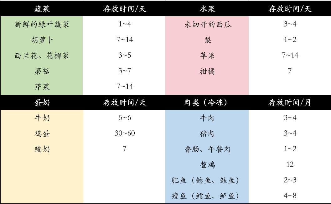 蔬菜水果可以擦干水分后放入冰箱,熟食可以用保鲜盒装好后放入冰箱。