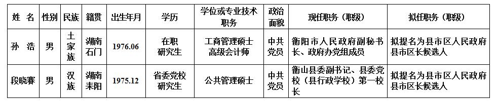 为了加强对干部选拔工作的监督,提高识别和任用干部的准确程度,现对省委常委会会议研究决定的下列候选人人选进行任前公示: