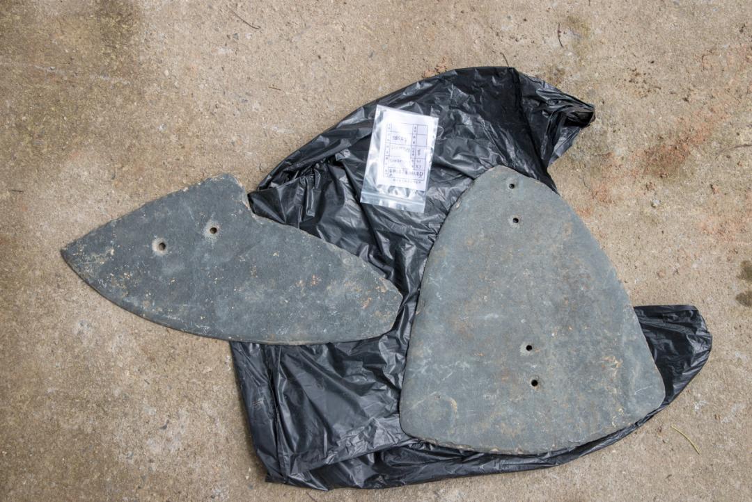 茂山遗址出土的鼎足。左侧为侧扁鼎足,右侧为弧背鱼鳍形鼎足。