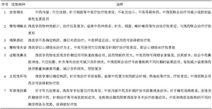 表 1 中医药治疗耳鼻咽喉头颈外科临床优势病种及专家指导建议
