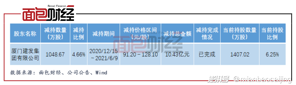 这不是建发集团第一次减持法拉电子股份。翻阅公司公告发现,建发集团于2020年12月15日至2021年6月9日期间,通过集中竞价和大宗交易的方式,累计减持公司股份1048.67万股,占公司总股本的4.66%。减持价格区间在91.20元/股—128.10元/股,减持套现约10.43亿元。