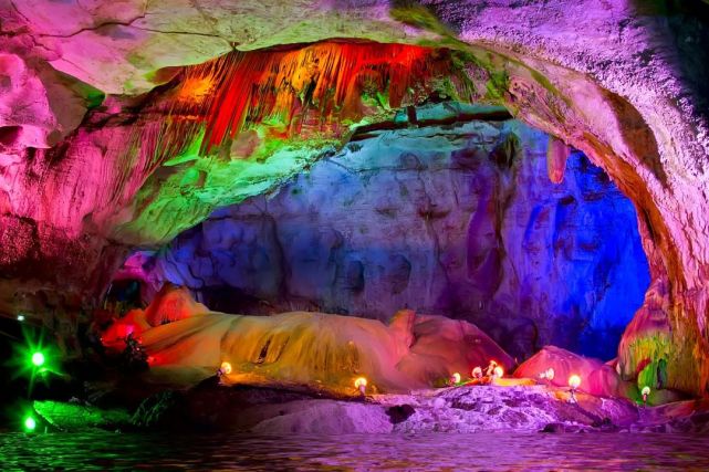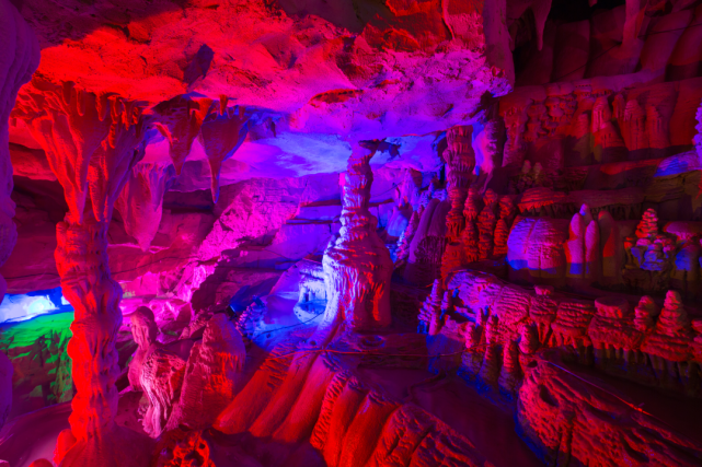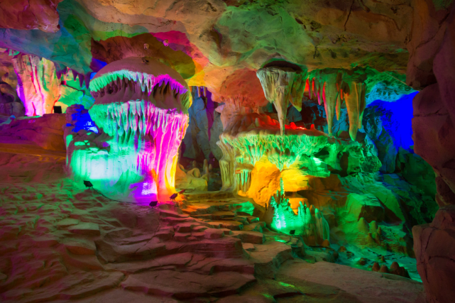 走进溶洞内,看着面前缤纷的色彩,听着耳边若隐若现的风声,仿佛能让你忘却尘世间的干扰,感受纯粹的舒心和快乐。