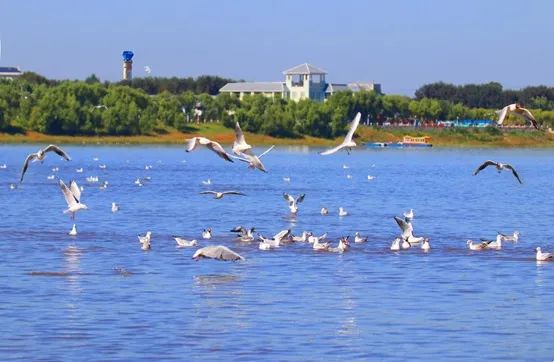 此平台为嫩江江鸥最佳观赏点。江鸥,长腿长嘴,脚趾间有蹼,善游水,以鱼、虾等为食。春夏时,江畔有大量的江鸥在高空盘旋、觅食嬉戏,是嫩江湾一道靓丽风景线。