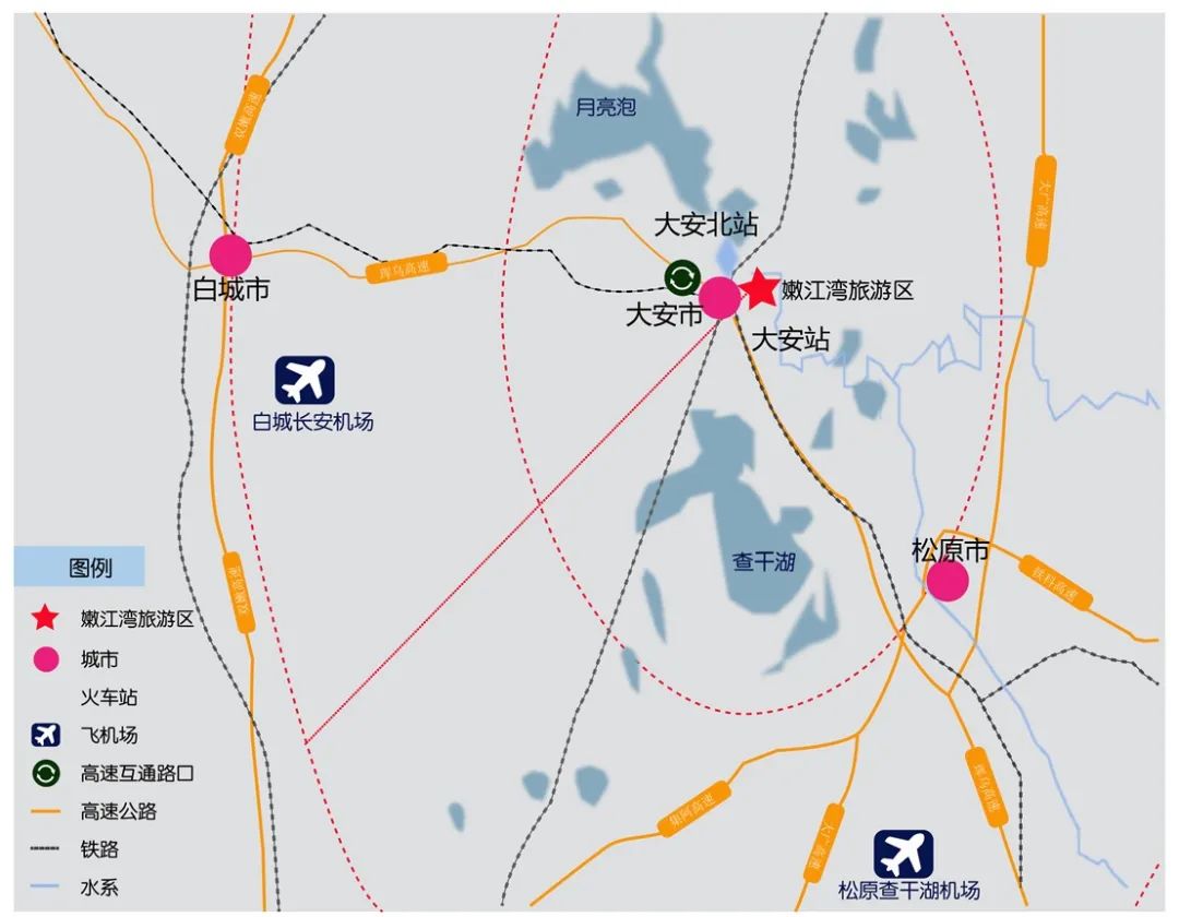 大安嫩江湾旅游区,景城相依,四路并举,交通条件优越。