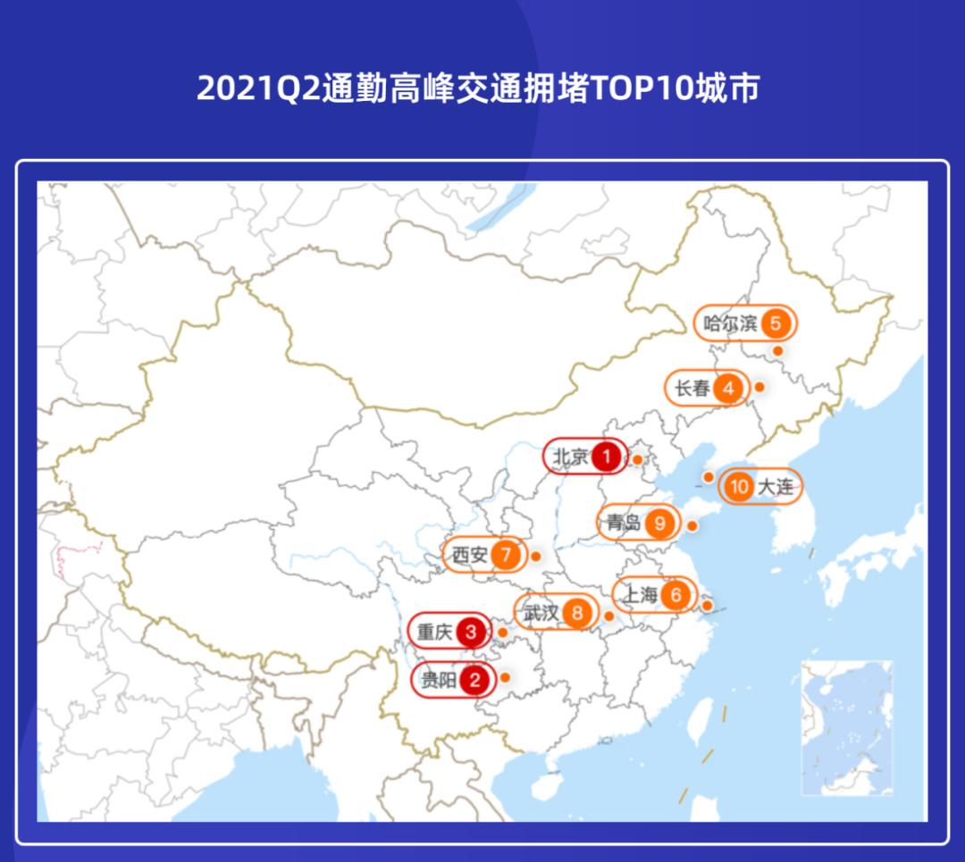 2021Q2通勤高峰交通拥堵TOP10城市/百度地图