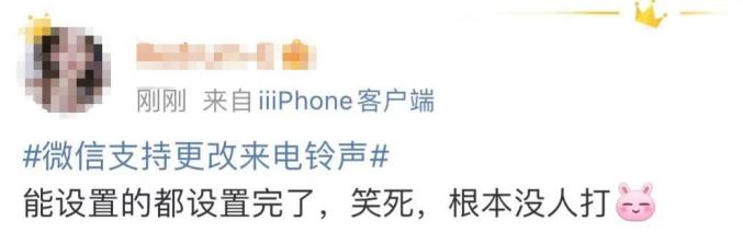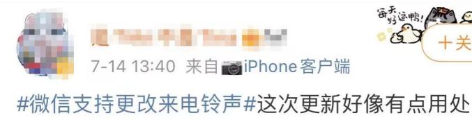 这次更新微信上线了令人意想不到的功能:可以自定义微信电话铃声。还冲上了微博热搜。