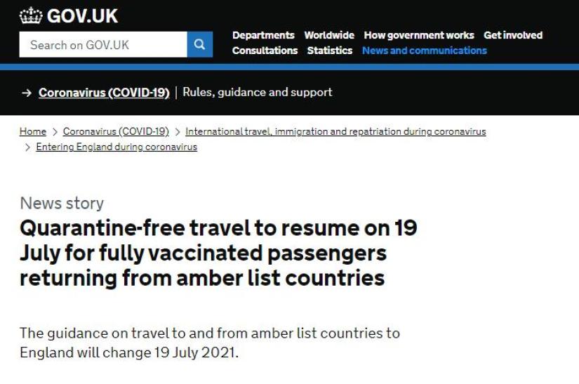不过,据英国天空新闻报道,英国政府正计划取消对在其他国家完成疫苗接种的人士的隔离检疫措施,详情将在未来几周内宣布。