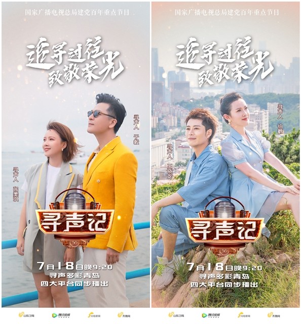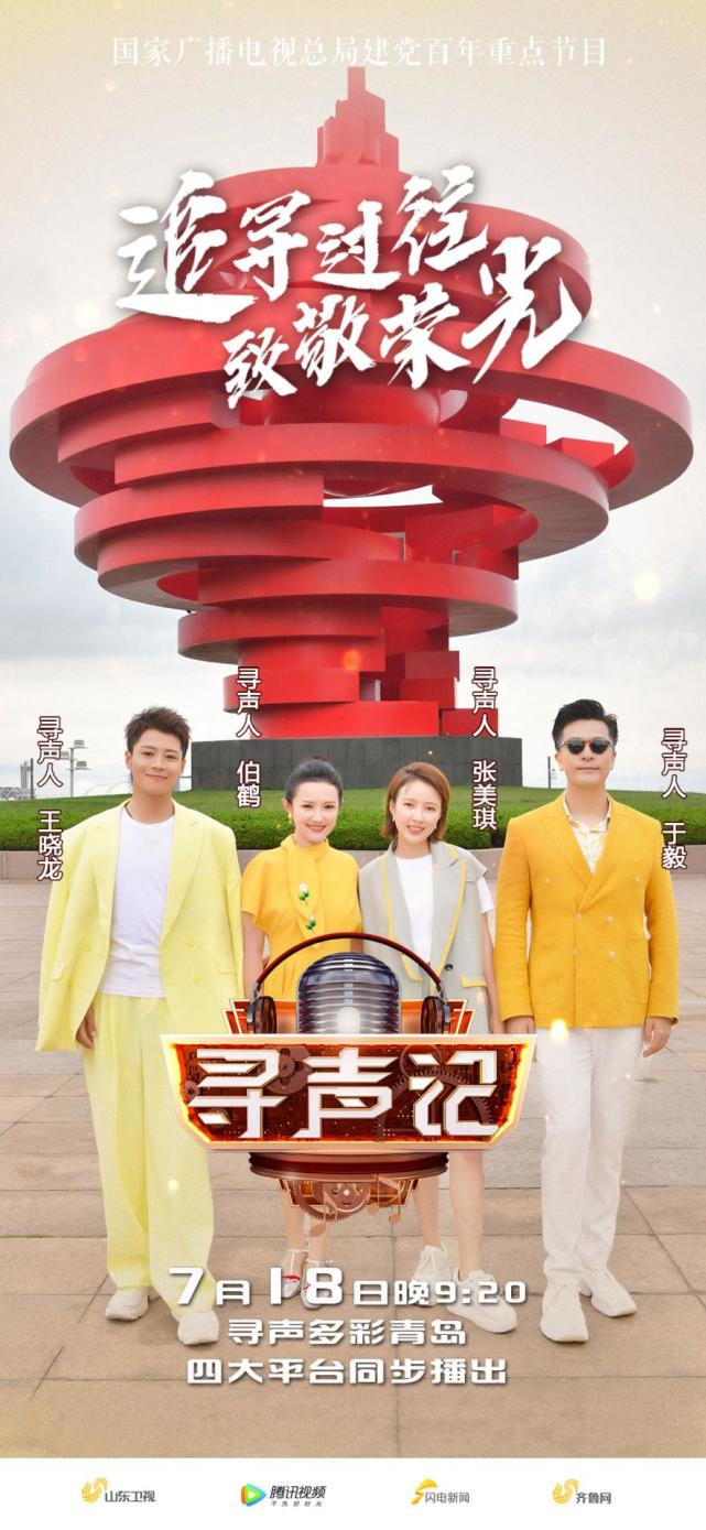 由山东卫视和腾讯视频联合出品的全国首档党建融媒体户外音乐故事节目《寻声记》第十期青岛篇将于7月18日晚9:20在山东卫视播出。《寻声记》以“追寻过往,致敬荣光”为主题,评书表演艺术家刘兰芳担任“寻声串讲人”。本期节目,演员于毅、女高音歌唱家伯鹤和山东广电主持人王晓龙、张美琪一起组成“寻声团”,以“踏浪”为主题,走进多彩青岛,探寻声音背后的故事,并将《青岛》和《我们是明天的太阳》相融合。