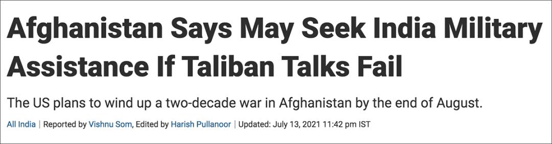 7月13日,阿富汗驻印度大使法里德·马蒙扎伊(Farid Mamundzay)告诉印度媒体NDTV:“如果我们与塔利班的和平进程没有取得阶段性进展,那么也许我们会寻求印度在未来几年里提供更多的军事援助。”