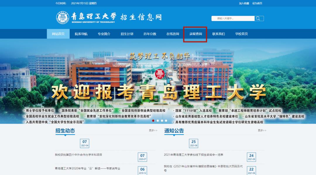 青岛理工大学的录取查询通道已开启