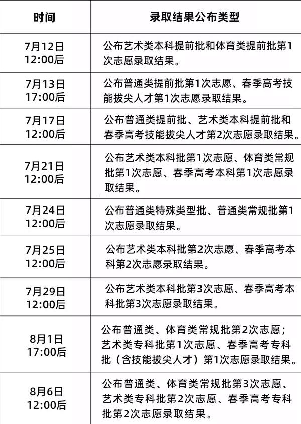 1、艺术类本科提前批和体育类提前批第1次志愿录取工作进展顺利,录取结果公布时间提前至7月12日12:00后。