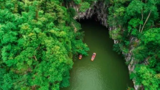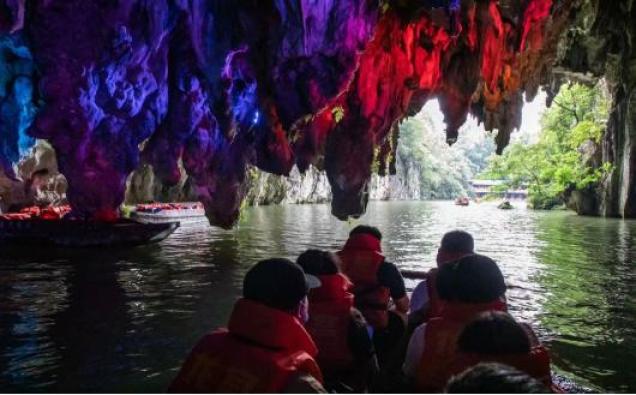 洞中奇景绚丽多姿,水幕电影光怪陆离,不少媒体记者表示,“这里的喀斯特景观令人叹为观止,乘船行于其中,有种穿梭于时光隧道的奇妙感受,非常有趣。”