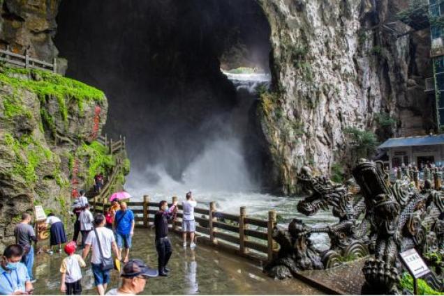 盛夏7月,龙宫的平均气温仅21.9℃,是避暑休闲的旅游胜地。集溶洞、峡谷、瀑布、峰林、绝壁、溪河、石林、暗河等数种喀斯特地质地貌景观于一体的龙宫,令媒体记者们直呼好清凉。
