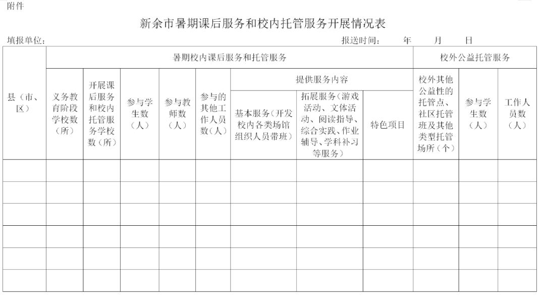 附件:新余市暑期课后服务和校内托管服务开展情况表