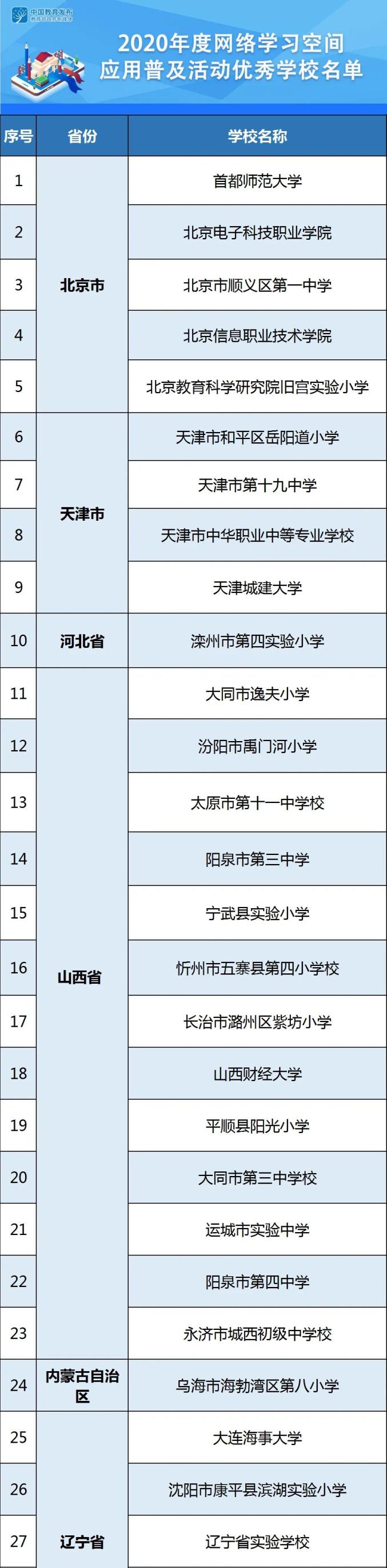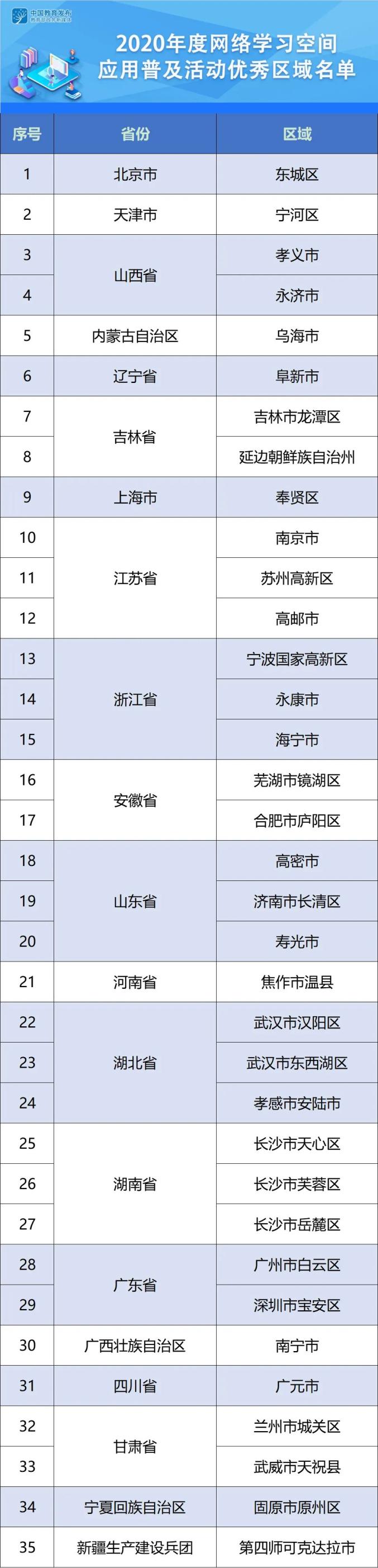 日前,教育部公示2020年度网络学习空间应用普及活动优秀区域和优秀学校名单,全国共有35个优秀地域、191个优秀学校。宁夏固原市原州区、银川市第九中学等10所学校入选。