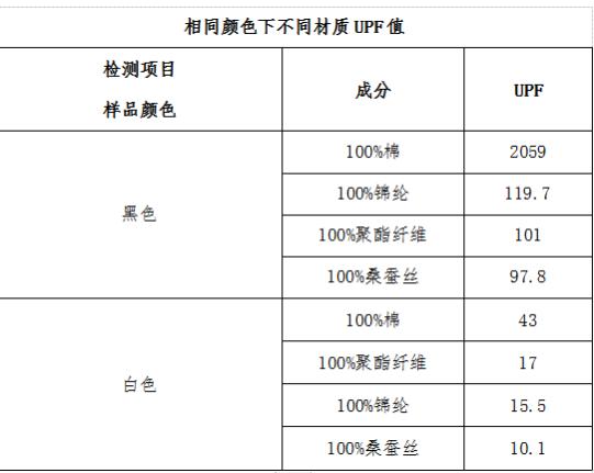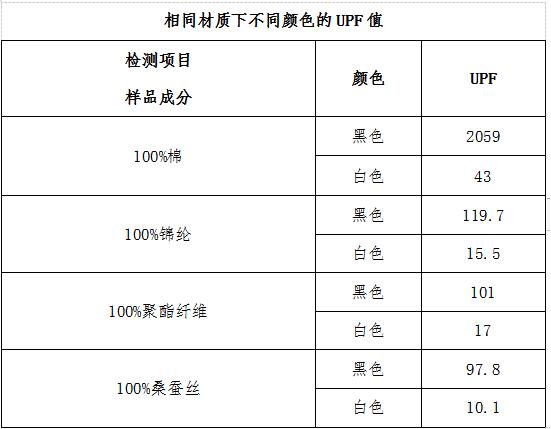 通过检测结果的比较得出,在材质相同的情况下,颜色越深、防晒效果确实越好。